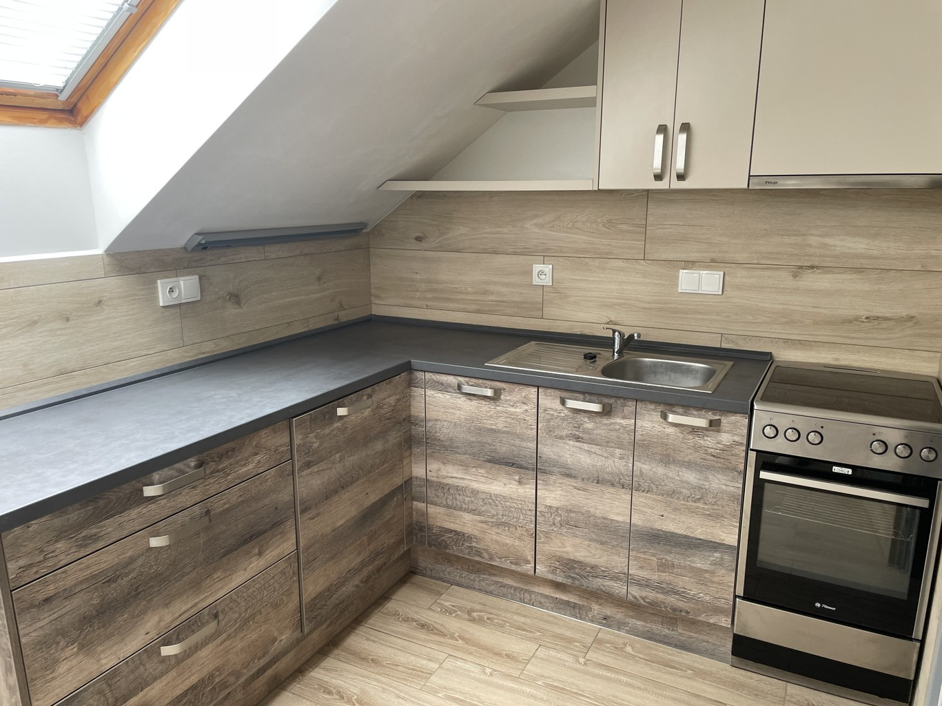 Výhody: první patro, otevřený prostor - plně vybavená podkrovní kuchyň spojená s obývacím pokojem, stínící technika - žaluzie, sprchový kout, vlastní parkovací stání